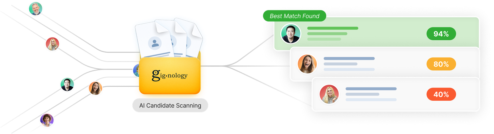 Gignology uses AI to automatically evaluate candidates, match them to the best-fit jobs, and streamline repetitive administrative tasks. Recruiters can review, adjust, or override AI suggestions at any time to maintain full control and reduce bias.